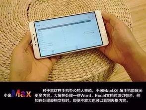 首先,咱们得聊聊外观。小米Max的爆料视频中,我们可以看到这款手机采用了全新的设计理念。屏幕尺寸达到了惊人的6.9英寸,这可是目前市面上最大的手机屏幕之一哦!而且,这款手机采用了全金属机身,质感十足。从视频中可以看出,小米Max的边框非常窄,几乎与屏幕融为一体,给人一种无边框的视觉体验。
